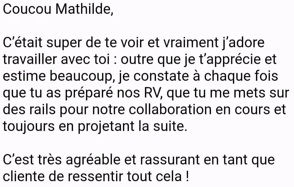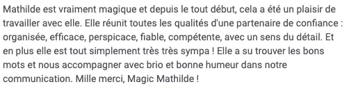 Je pourrais te faire un speech marketing sur mes résultats, mais je préfère laisser ceux qui m’ont confié leur business t’en parler.