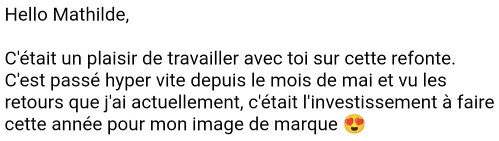 Avec cette prestation, laissez-moi structurer un message qui attire les bons clients, leur donne envie d’aller plus loin et leur montre, en quelques secondes, pourquoi ils ont tout intérêt à vous vous choisir.