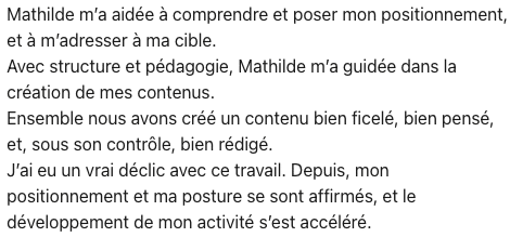 Le tout à prix mini, avec ce qu’il faut de stratégie dedans pour capitaliser sur mes cinq ans à exercer en tant que copywriter histoire que ça te serve vraiment.