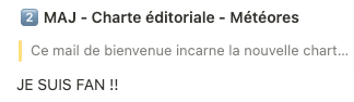 - D’améliorer l’efficacité et la qualité des communications : avec des lignes directrices claires, l’équipe de Météores peut désormais produire des communications de haute qualité de manière plus efficace, réduisant les erreurs et les incohérences.