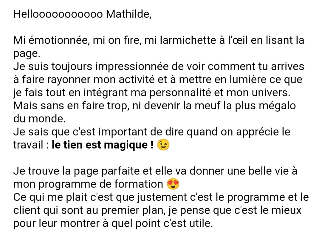 Par contre si vous faites cet effort de construire une proposition vraiment pertinente pour votre audience et que vous l’engagez à aller lire la présentation de votre offre, je peux vous garantir qu’un contenu bien pensé ET bien écrit fera la différence sur vos ventes.
