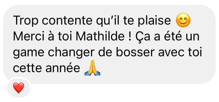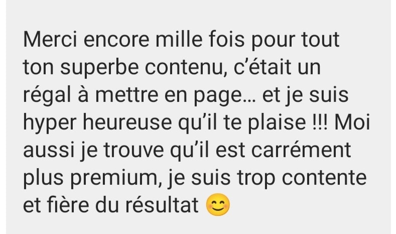 Ça tombe bien, c’est exactement pour arriver à ce résultat que j’ai conçu ma méthodologie. C’est une autre manière de penser ton message. Et c’est pour ça qu’elle fonctionne.