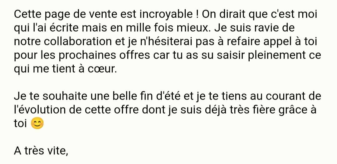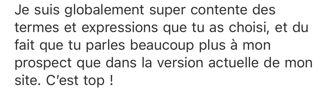 Parce que c’est ça finalement que tu viens chercher quand tu veux déléguer ton copywriting pas vrai ? Tu veux un texte qui :
