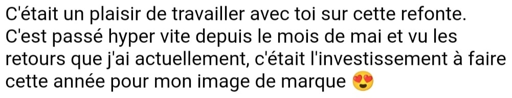 Il faudra donc que vous le mettiez ensuite en forme ou que vous fassiez appel à un webdesigner. Bien sûr, je pourrai vous donner des recommandations de présentation pour les différents blocs afin de mettre en valeur leur contenu.