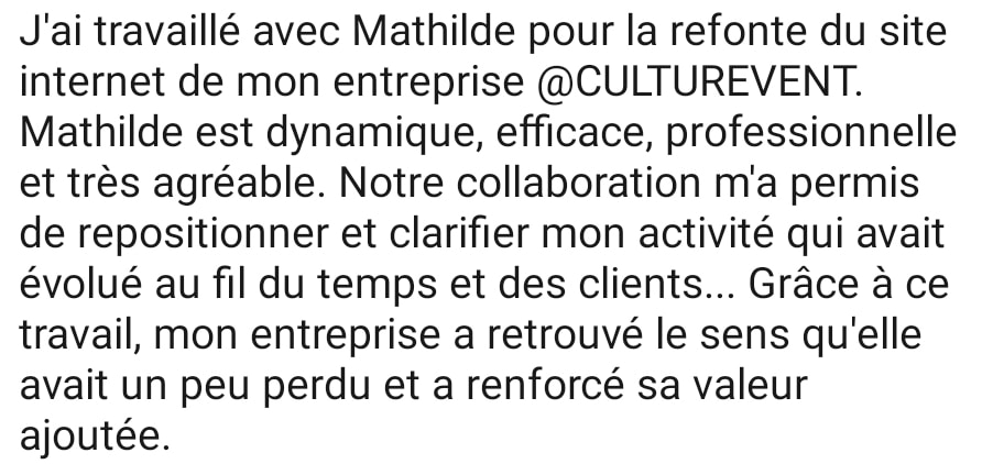 Et si vous souhaitez d’abord échanger par mail, vous pouvez me contacter directement à « bonjour@magicmathilde.fr ». Je vous répondrai sous 48h ouvrées.